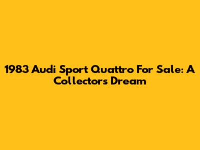 Hey there, car enthusiasts! Are you on the hunt for a legendary piece of automotive history? Look no further, because the 1983 Audi Sport Quattro might just be the holy grail you've been searching for. This isn't just a car; it's a rally icon, a symbol of engineering prowess, and a testament to Audi's commitment to pushing the boundaries of performance. Finding one for sale is like stumbling upon a pot of gold at the end of a rainbow, so let's dive into what makes this car so special and why you should consider adding it to your collection.