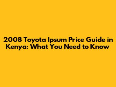 2008 Toyota Ipsum Price Guide In Kenya: What You Need To Know