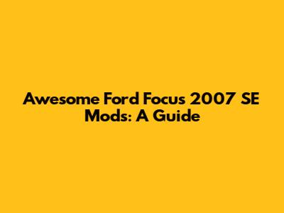 Awesome Ford Focus 2007 SE Mods: A Guide