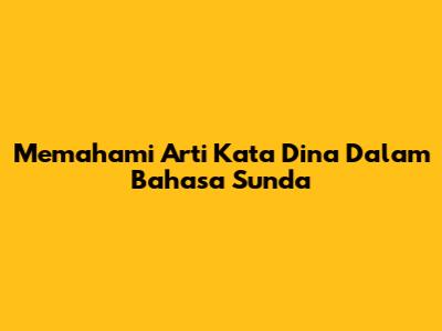 Memahami Arti Kata 'Dina' Dalam Bahasa Sunda