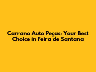 Hey guys! Are you in Feira de Santana and in desperate need of some reliable auto parts? Look no further! Let’s dive into why Carrano Auto Peças should be your go-to spot. We're going to break down everything you need to know to make an informed decision and get your vehicle back on the road ASAP!