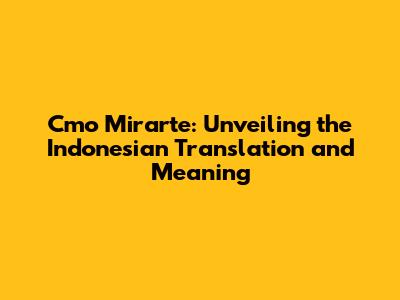 Cmo Mirarte: The Ultimate Guide To Understanding Its Indonesian Translation