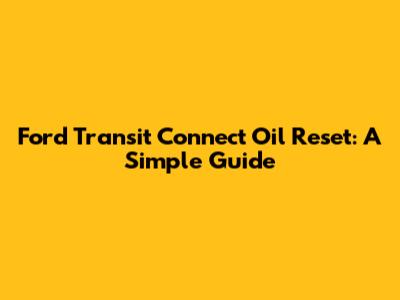 Ford Transit Connect Oil Reset: A Simple Guide