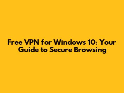 Free VPN For Windows 10: Your Guide To Secure Browsing