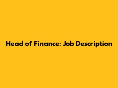 Head Of Finance: Job Description