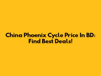 China Phoenix Cycle Price In BD: Find Best Deals!
