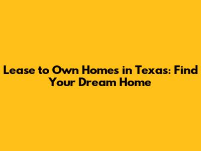 Lease To Own Homes In Texas: Find Your Dream Home