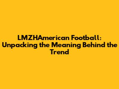 LMZHAmerican Football: Unpacking The Meaning Behind The Trend