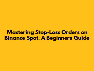Mastering Stop-Loss Orders On Binance Spot: A Beginner's Guide