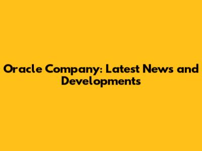 Oracle Company: Latest News And Developments