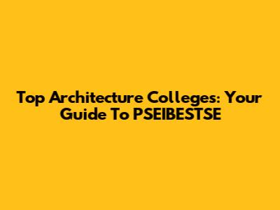Top Architecture Colleges: Your Guide To PSEIBESTSE