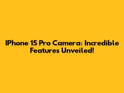 IPhone 15 Pro Camera: Incredible Features Unveiled!