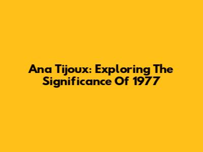 Ana Tijoux: Exploring The Significance Of '1977'