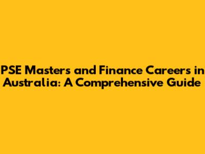 PSE Masters And Finance Careers In Australia: A Comprehensive Guide