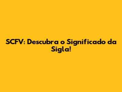 SCFV: Descubra O Significado Da Sigla!
