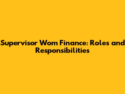 Supervisor Wom Finance: Roles And Responsibilities
