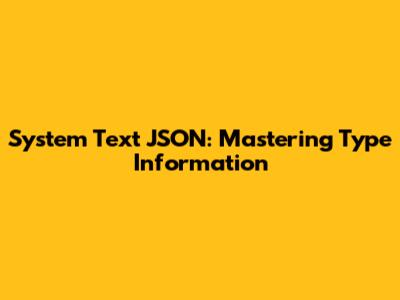 Hey guys! Today, we're diving deep into the world of System.Text.Json and how to master type information. If you're like me, you've probably wrestled with serialization and deserialization, trying to make sure your data types are correctly handled. Well, buckle up, because we're about to unravel the mysteries and get you coding like a pro!