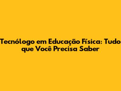 O Que é um Tecnólogo em Educação Física?