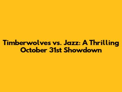 Timberwolves Vs. Jazz: A Thrilling October 31st Showdown