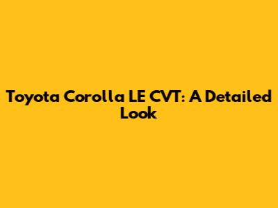 Toyota Corolla LE CVT: Comprehensive Guide
