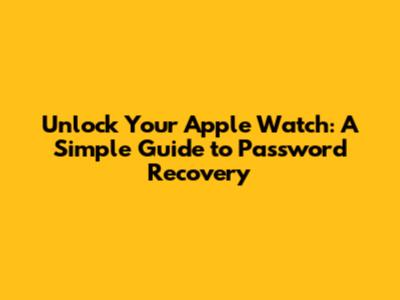 Unlock Your Apple Watch: A Simple Guide To Password Recovery