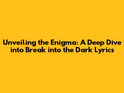 Hey music lovers, are you ready to embark on a lyrical journey? Let's dive deep into the captivating world of "Break into the Dark" lyrics. This song, with its mysterious title, promises an intriguing exploration of themes that resonate with the human experience. We're going to spend a solid hour dissecting the verses, uncovering hidden meanings, and appreciating the artistry behind the words. Get ready to have your minds blown as we decipher the secrets hidden within each line!