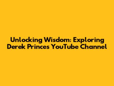 Unlocking Wisdom: Exploring Derek Prince's YouTube Channel