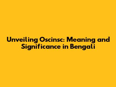 Unveiling Oscinsc: Meaning And Significance In Bengali