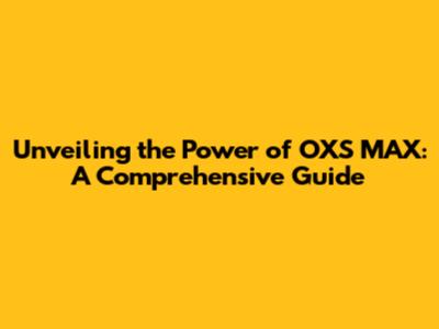Unveiling The Power Of OXS MAX: A Comprehensive Guide