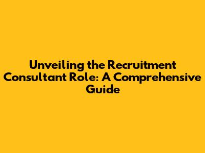 Unveiling The Recruitment Consultant Role: A Comprehensive Guide