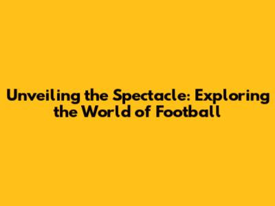 Unveiling The Spectacle: Exploring The World Of Football